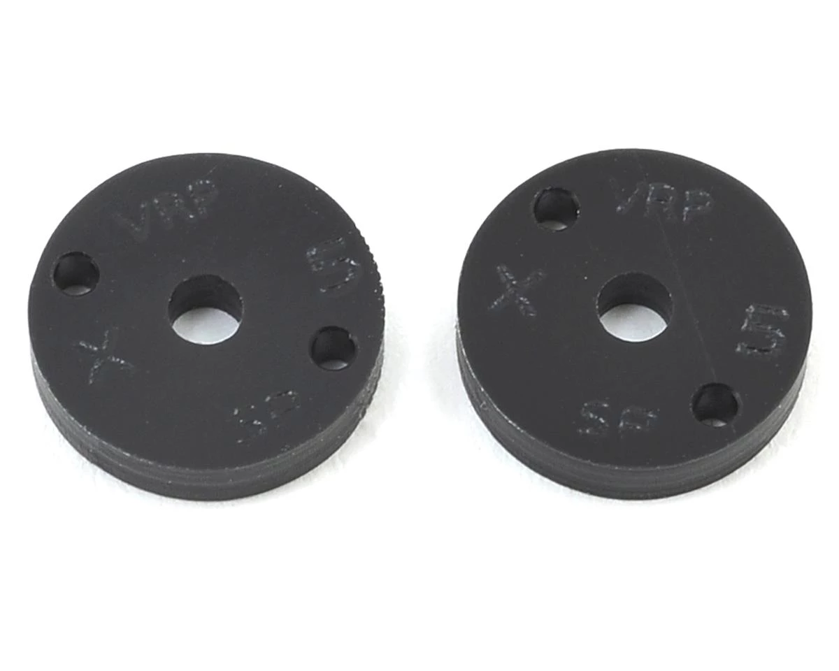 This is a pack of two VRP 12mm Machined “SP” (Stock Pistons) Shock Pistons, intended for use with Team Associated 1/10 Scale Off-Road Vehicles equipped with V2 shock shafts (where the piston is attached to the shock shaft with a screw; not an e-clip). These are stock replacement pistons that will offer a smoother feel and tighter tolerance inside the shock compared to your kit pistons.